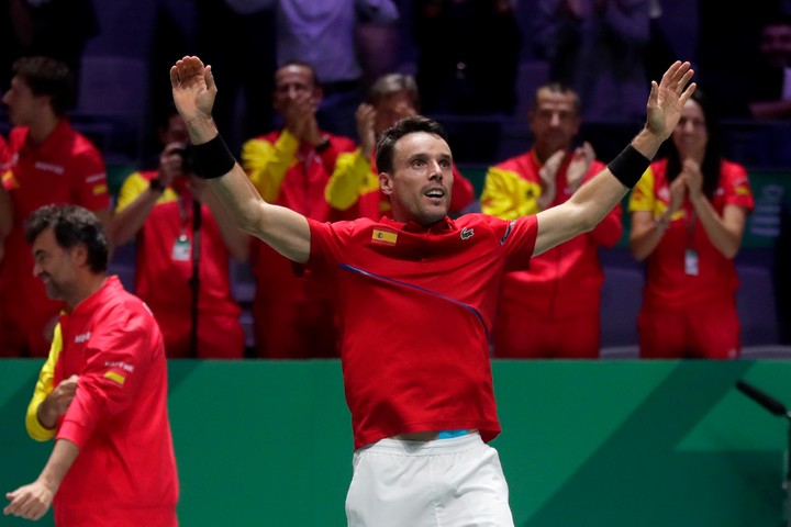 Úvodnú dvojhru mali na starosti Félix Auger-Aliassime a Roberto Bautista Agut. Hráči, ktorí vo štvrťfinále, ani semifinále nehrali teda dostali šancu zabojovať priamo vo finále. Kanaďan dokonca nenastúpil počas týždňa ani raz, no v prvom sete sa zdatne držal. Napriek tomu zápas prehral a Španieli tak viedli 1:0. Následne sa na kurt dostal Denis Shapovalov s domácou legendou Rafaelom Nadalom. Prvý set vyznel jasne v prospech svetovej jednotky, no ten druhý už bol o poznanie vyrovnanejší. Nadal však zúročil skúsenosti a zápas doviedol do víťazného konca. Priniesol tak Španielom v poradí šiestu "šalátovú misu" v histórii tejto súťaže.