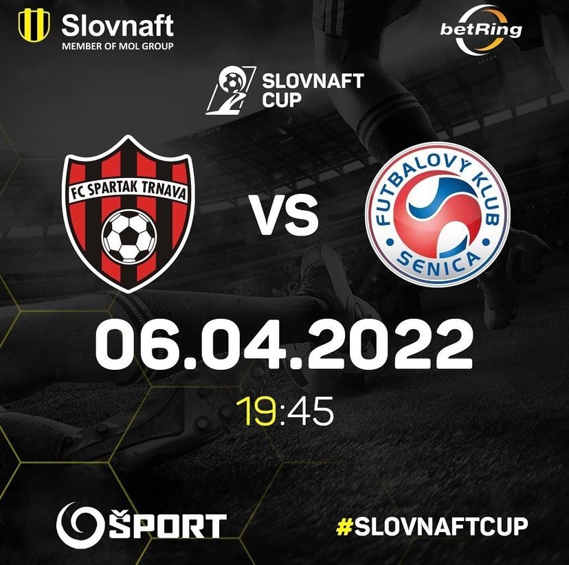 Slovenský pohár vo futbale- V Slovnaft Cupe 2021/2022 zostali už len posledné štyri tímy, ktoré zabojujú o postup do finále a následný titul. Dnes o 19:45 je na programe zápas FC Spartak Trnava - FK Senica, v rovnakom čase, ale zajtra, je na programe druhé semifinále, AS Trenčín - ŠK Slovan Bratislava. Zápasy môžete sledovať na obrazovkách JOJ Šport.
